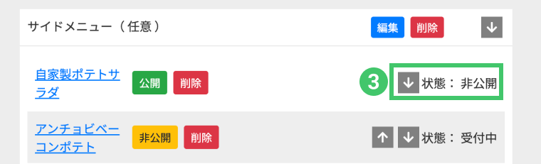 ❸状態が「非公開」に表示が変わります。