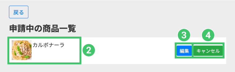 ❷申請中の商品一覧ページより申請中の商品が確認できます。