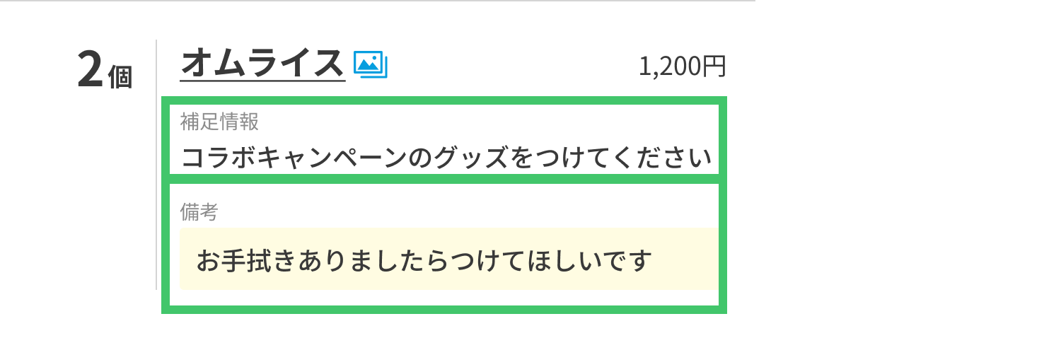 調理者の店舗内のコミュニケーションにお使いください。(店舗アプリ内のみ表示)