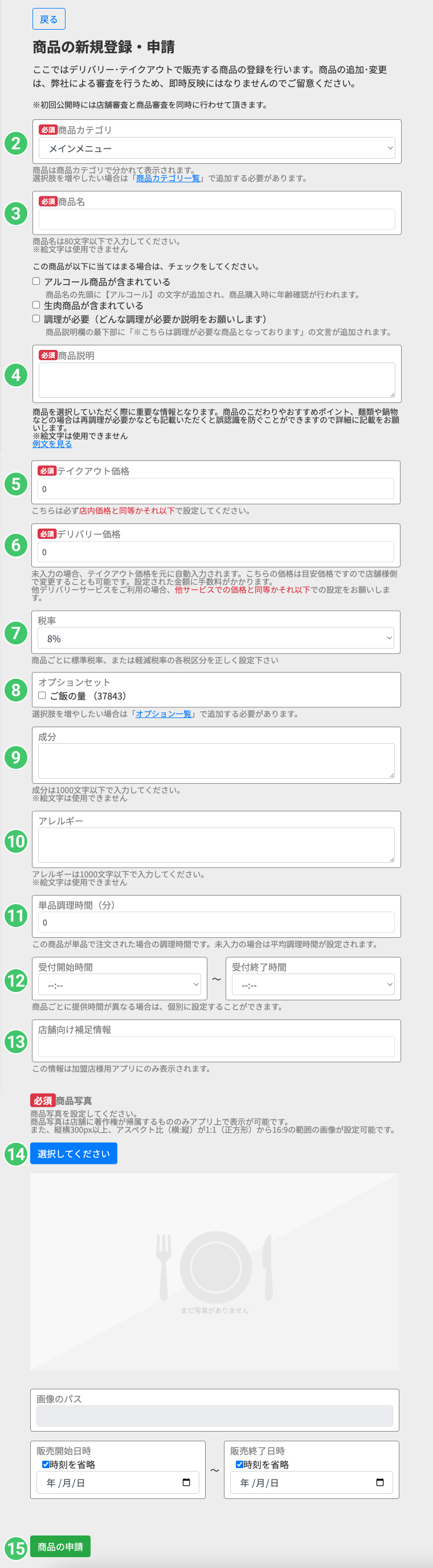 ※アルコール商品、生肉が含まれる商品や調理を必要とする商品をご登録の場合は、下のチェックボックスの選択をお願いいたします。