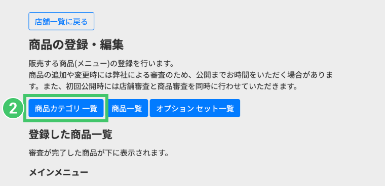 ❷商品の登録・編集画面の「商品カテゴリ一覧」をタップしてください。