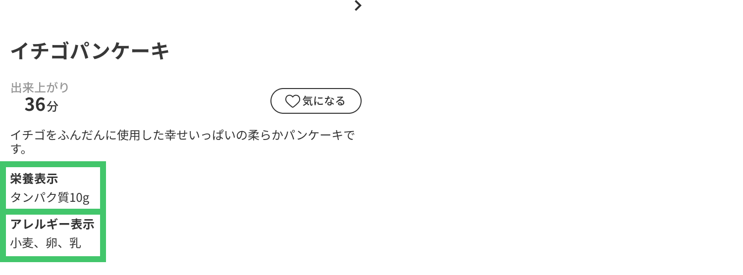 商品に含まれるアレルギー情報を表示させることで、注文前にお客様自身で成分表を確認することができます。