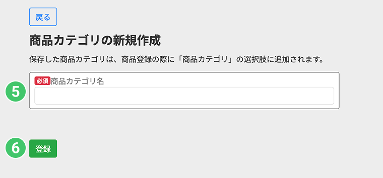 ❺にカテゴリ名を入力後、❻の「登録」をタップしてください。