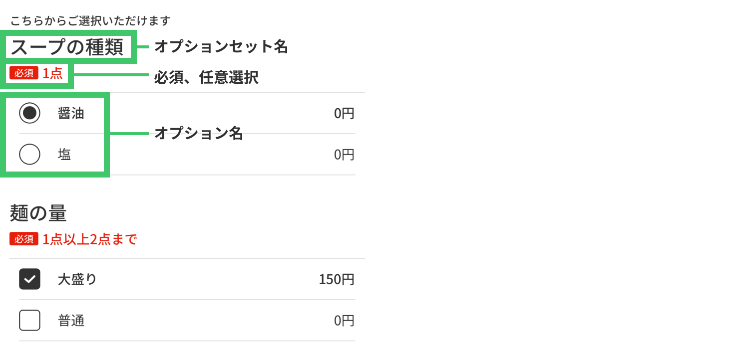 【必須】選べる付け合わせの選択等必ずどれかを選んでいただく必要がある場合