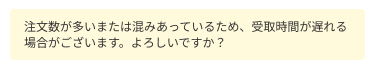 同時に受け付けている注文数が設定した数を超えた場合、上のように店舗が混雑している旨がアプリ上でお客様に表示されます。