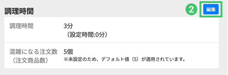 ❷営業時間詳細>調理時間の「編集」をタップしてください。