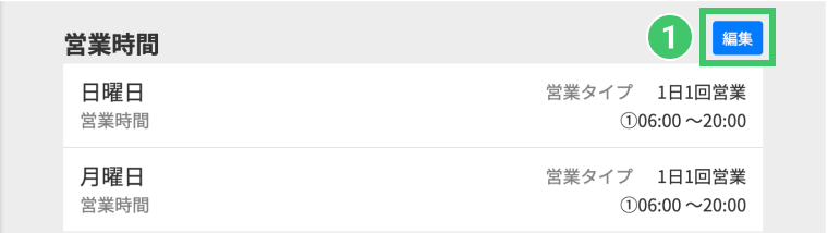❶店舗情報ページの営業時間の「編集」をタップしてください。