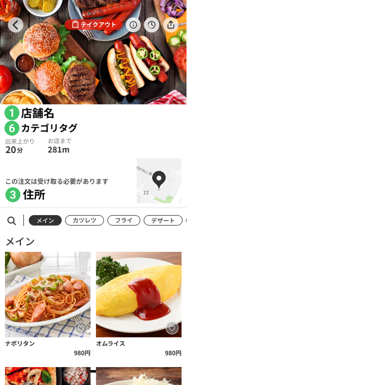 掲載料理の集合写真または掲載商品のお写真をご登録ください。(アプリ公開時に一番最初に表示される写真になります。)