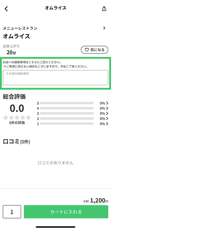 注文時に「特定の食材を抜いてほしい」などのお客様からの要望に応えられない場合、事前に「その他の連絡事項」を表示しない設定にすることができます。