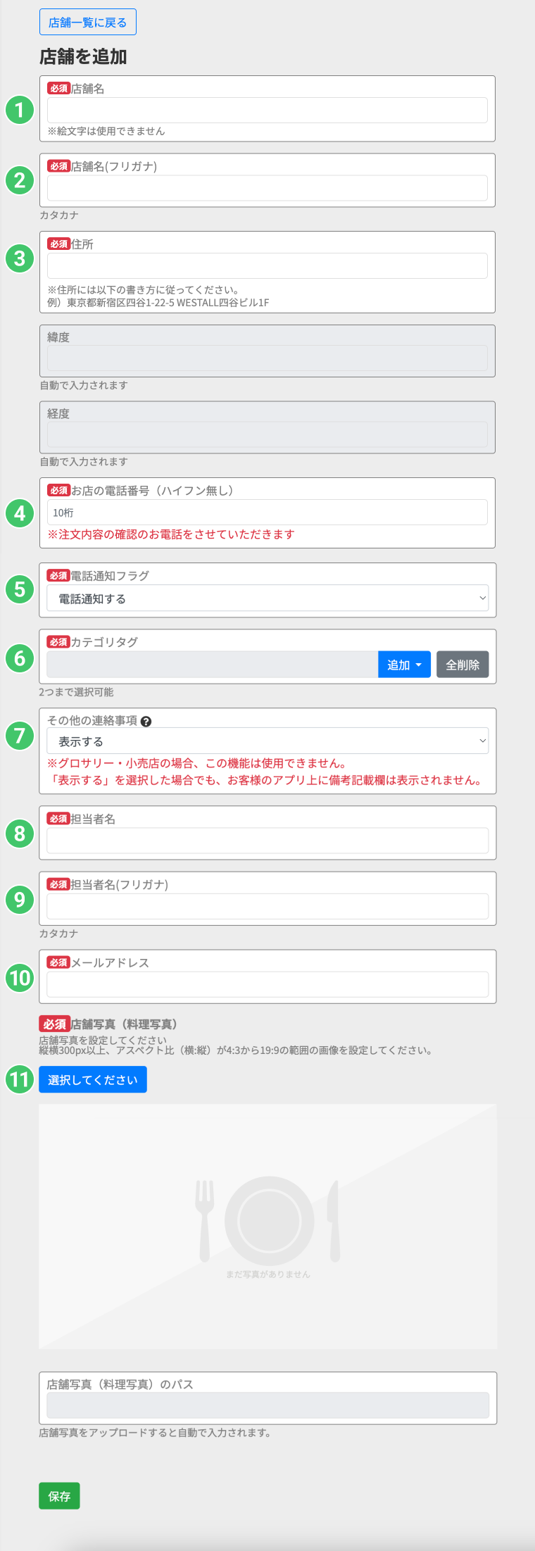 新規登録をしたい店舗情報を下記項目に沿ってご入力ください。