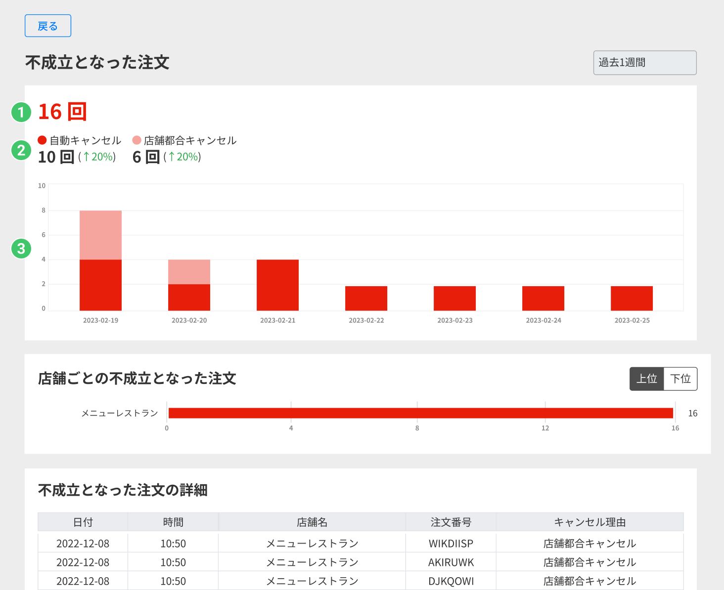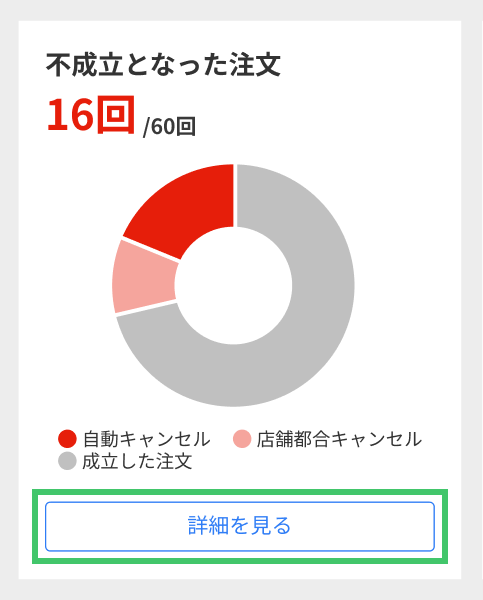 受付否認や自動キャンセルによって、受け付けることが出来なかった注文件数が表示されます。