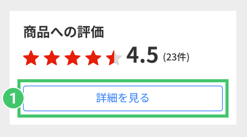 お客様からの商品への口コミ内容や評価件数が表示されます。